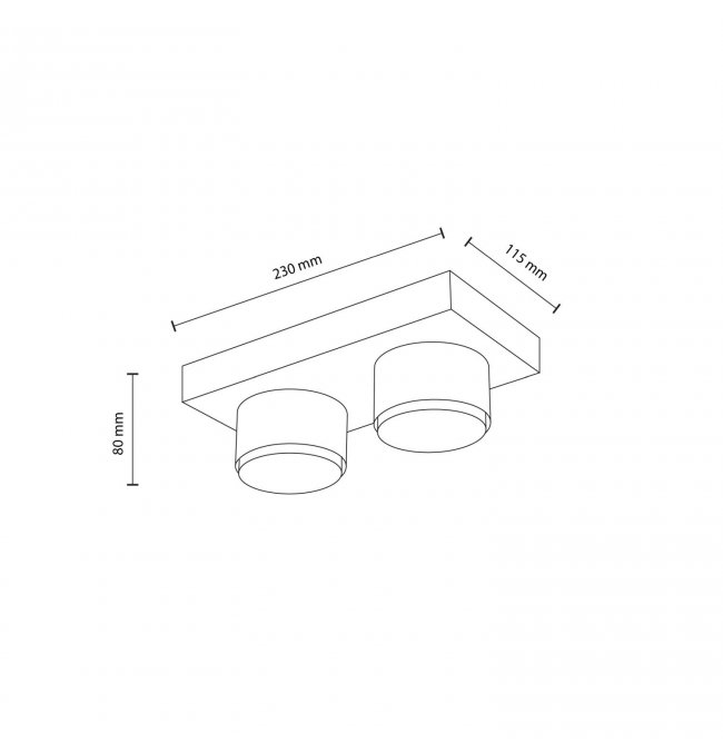 Oprawa wyposażona jest w dwa gwinty GX53, a maksymalna moc każdego źródła światła wynosi 11 W. Żarówki nie są dołączone do zestawu — należy je dokupić osobno.